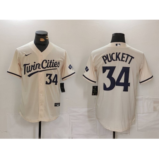 Men's Majestic Minnesota Twins #34 Kirby Puckett Replica Cream Alternate Cool Base MLB Jersey