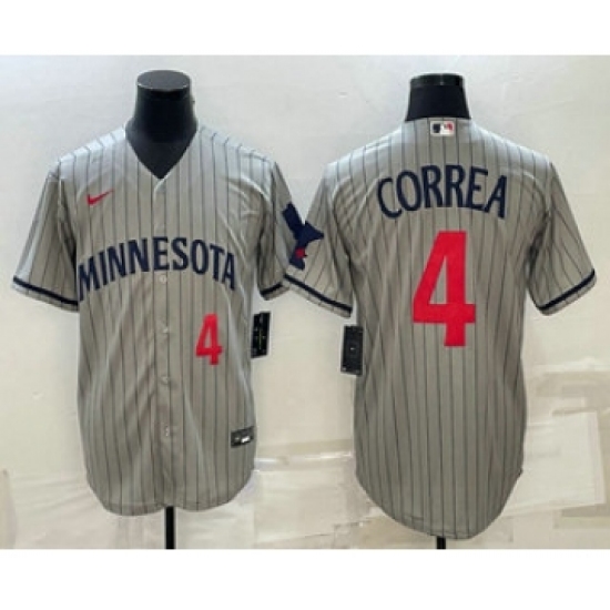 Men's Minnesota Twins #4 Carlos Correa 2023 Grey Home Team Cool Base Stitched Jersey