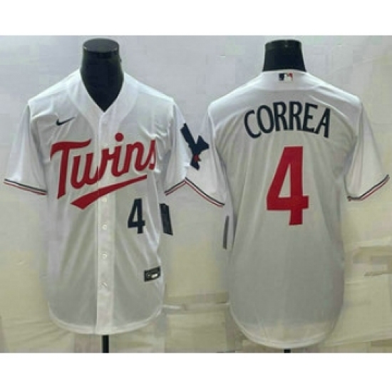 Men's Minnesota Twins #4 Carlos Correa Number White Red Stitched MLB Cool Base Nike Jersey