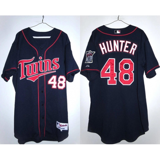 Men's Minnesota Twins #48 Torii Hunter Navy Double Knit Stitched Baseball Jersey
