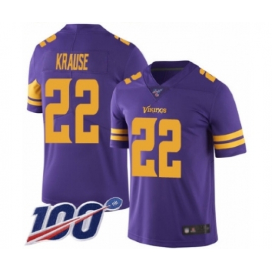 Men's Minnesota Vikings #22 Paul Krause Limited Purple Rush Vapor Untouchable 100th Season Football Jersey