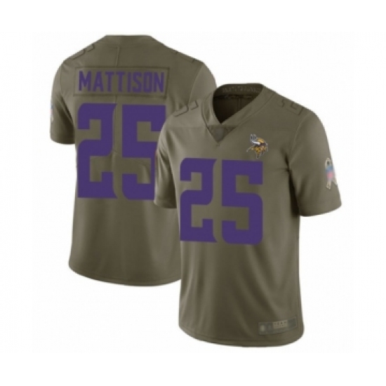 >Men's Minnesota Vikings #25 Alexander Mattison Limited Olive 2017 Salute to Service Football Jersey