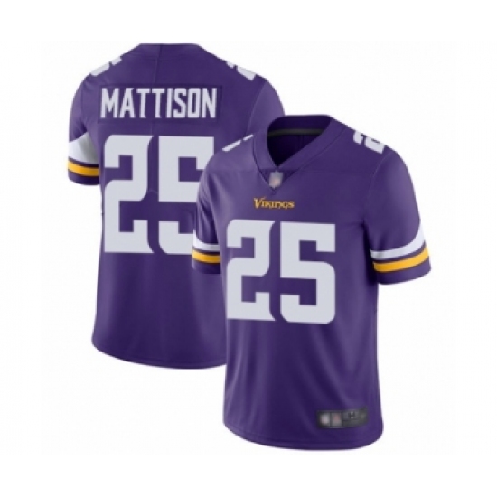 >Men's Minnesota Vikings #25 Alexander Mattison Purple Team Color Vapor Untouchable Limited Player Football Jersey