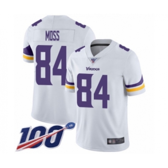 Men's Minnesota Vikings #84 Randy Moss White Vapor Untouchable Limited Player 100th Season Football Jersey