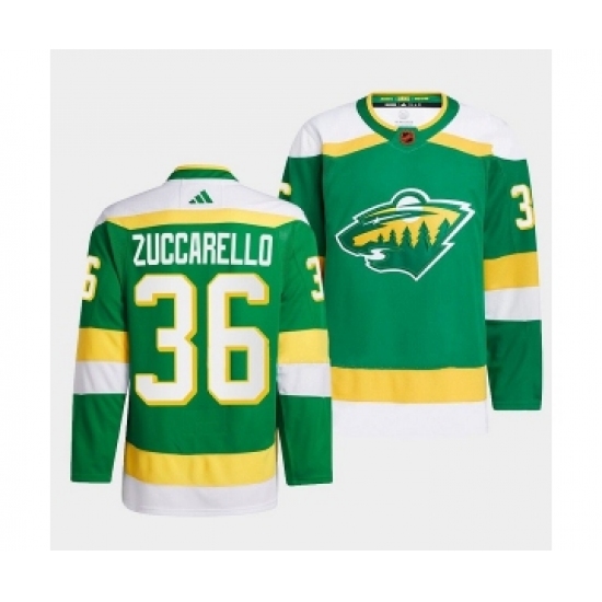 Men's Minnesota Wild #36 Mats Zuccarello Green 2022-23 Reverse Retro Stitched Jersey