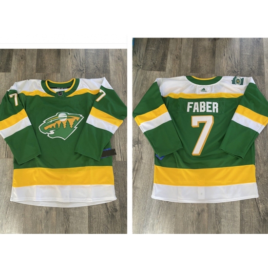 >Men's Minnesota Wild #7 Brock Faber Green 2023-24 Stitched Jersey