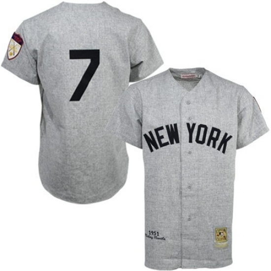 Home>MLB>New York Yankees>Mickey Mantle>Men's Mitchell and Ness 1951 New York Yankees #7 Mickey Mantle Authentic Grey Throwback MLB Jersey