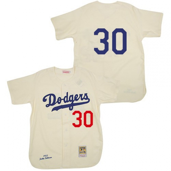 Home>MLB>Los Angeles Dodgers>Maury Wills>Men's Mitchell and Ness 1955 Los Angeles Dodgers #30 Maury Wills Replica Cream Throwback MLB Jersey
