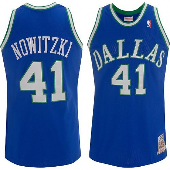 Men's Mitchell and Ness Dallas Mavericks #41 Dirk Nowitzki Swingman Blue Throwback NBA Jersey