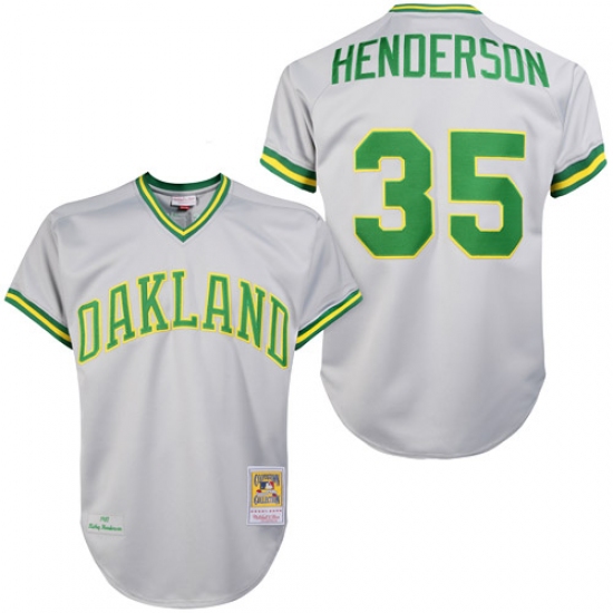 Home>MLB>Oakland Athletics>Rickey Henderson>Men's Mitchell and Ness Oakland Athletics #35 Rickey Henderson Replica Grey 1981 Throwback MLB Jersey