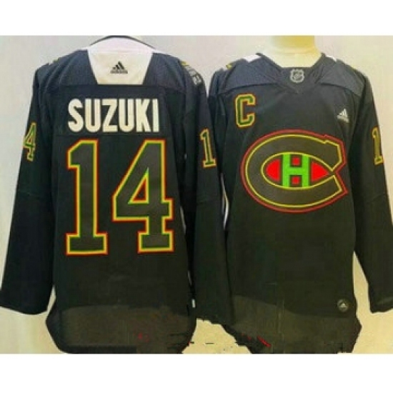 >Men's Montreal Canadiens #14 Nick Suzuki Black History Night Authentic Jersey