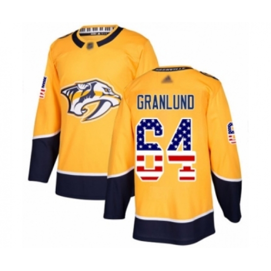 Men's Nashville Predators #64 Mikael Granlund Authentic Gold USA Flag Fashion Hockey Jersey