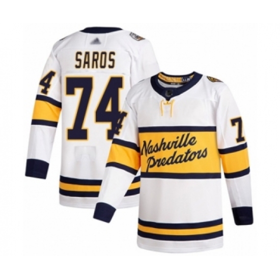>Men's Nashville Predators #74 Juuse Saros Authentic White 2020 Winter Classic Hockey Jersey