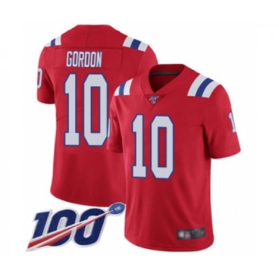 Men's New England Patriots #10 Josh Gordon Red Alternate Vapor Untouchable Limited Player 100th Season Football Jersey