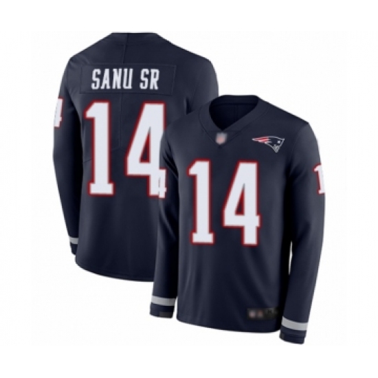 Men's New England Patriots #14 Mohamed Sanu Sr Limited Navy Blue Therma Long Sleeve Football Jersey