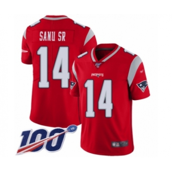 Men's New England Patriots #14 Mohamed Sanu Sr Limited Red Inverted Legend 100th Season Football Jersey