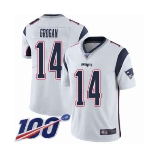 Men's New England Patriots #14 Steve Grogan White Vapor Untouchable Limited Player 100th Season Football Jersey