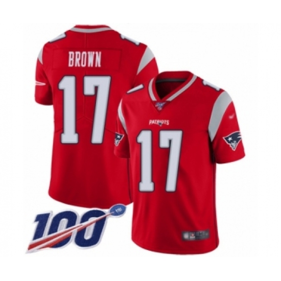 >Men's New England Patriots #17 Antonio Brown Limited Red Inverted Legend 100th Season Football Jersey