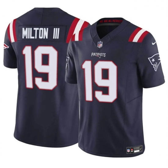 Men's New England Patriots #19 Joe Milton III Navy 2024 F.U.S.E. Vapor Limited Football Stitched Jersey