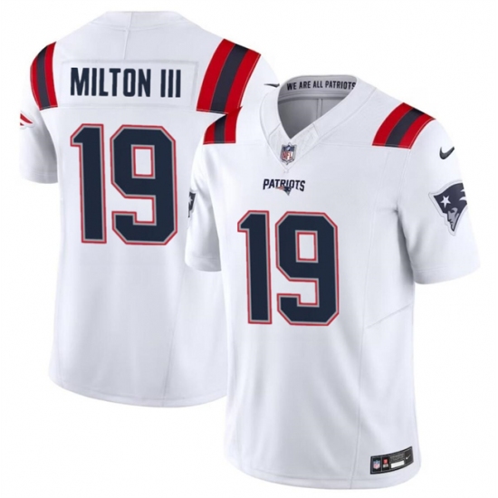 Men's New England Patriots #19 Joe Milton III White 2023 F.U.S.E. Vapor Limited Football Stitched Jersey