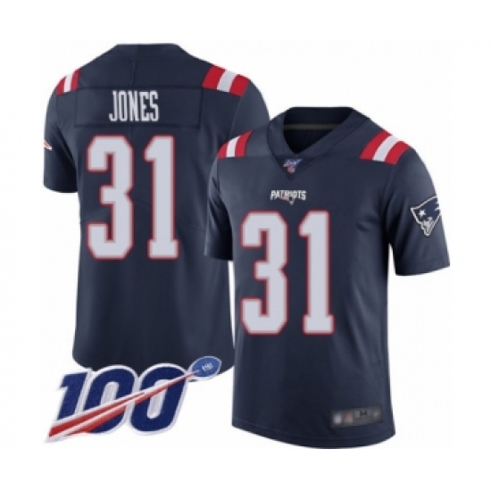 >Men's New England Patriots #31 Jonathan Jones Limited Navy Blue Rush Vapor Untouchable 100th Season Football Jersey