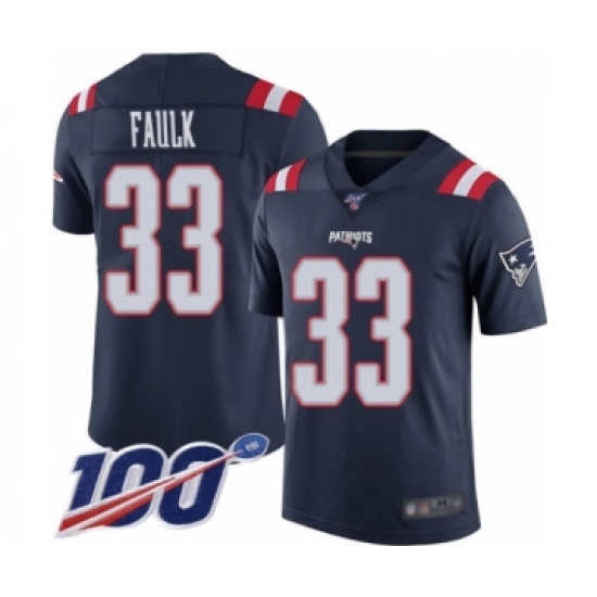 >Men's New England Patriots #33 Kevin Faulk Limited Navy Blue Rush Vapor Untouchable 100th Season Football Jersey