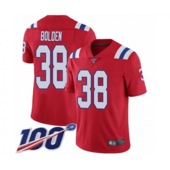 >Men's New England Patriots #38 Brandon Bolden Red Alternate Vapor Untouchable Limited Player 100th Season Football Jersey