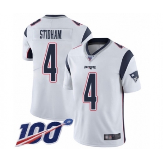 Men's New England Patriots #4 Jarrett Stidham White Vapor Untouchable Limited Player 100th Season Football Jersey
