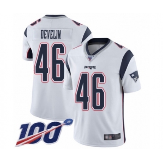 Men's New England Patriots #46 James Develin White Vapor Untouchable Limited Player 100th Season Football Jersey