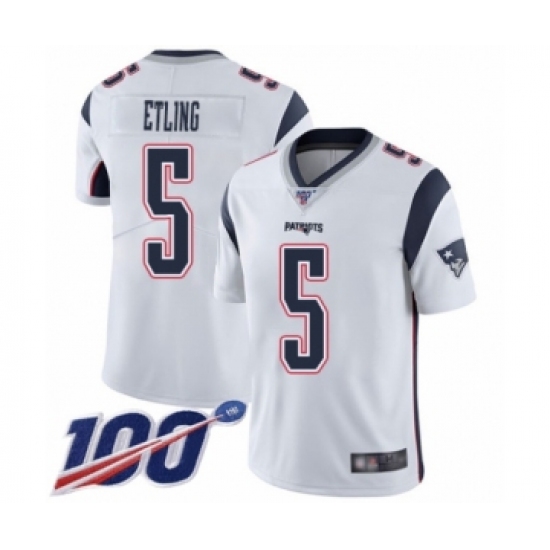 Men's New England Patriots #5 Danny Etling White Vapor Untouchable Limited Player 100th Season Football Jersey