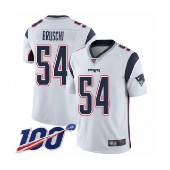 Men's New England Patriots #54 Tedy Bruschi White Vapor Untouchable Limited Player 100th Season Football Jersey