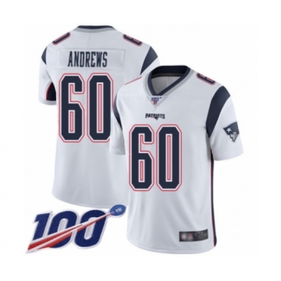 Men's New England Patriots #60 David Andrews White Vapor Untouchable Limited Player 100th Season Football Jersey