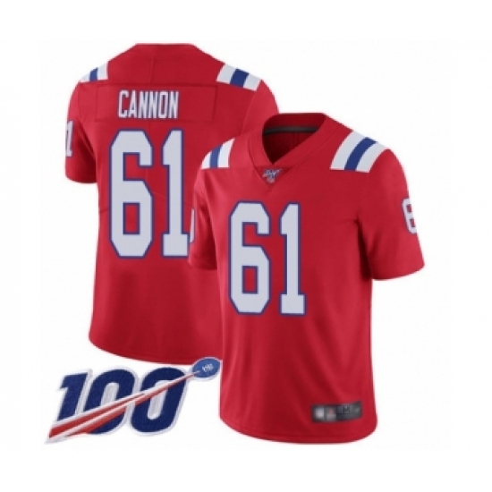 >Men's New England Patriots #61 Marcus Cannon Red Alternate Vapor Untouchable Limited Player 100th Season Football Jersey