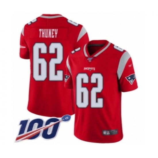 Men's New England Patriots #62 Joe Thuney Red Alternate Vapor Untouchable Limited Player 100th Season Football Jersey