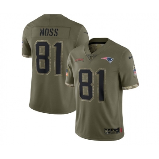 >Men's New England Patriots #81 Randy Moss 2022 Olive Salute To Service Limited Stitched Jersey