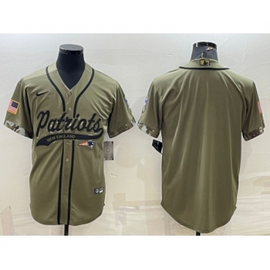 Men's New England Patriots Blank Olive Salute to Service Cool Base Stitched Baseball Jersey