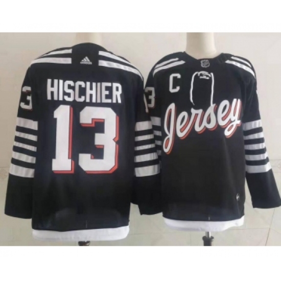 Men's New Jersey Devils #13 Nico Hischier adidas Black 2021-22 Alternate Primegreen Authentic Pro Player Third Jersey