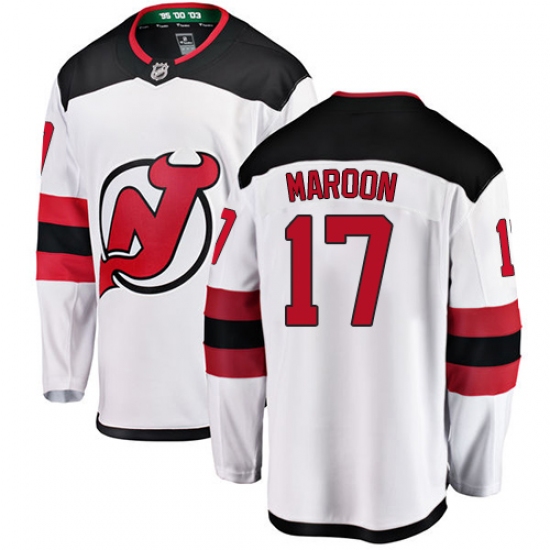 >Men's New Jersey Devils #17 Patrick Maroon Fanatics Branded White Away Breakaway NHL Jersey