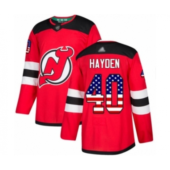 Men's New Jersey Devils #40 John Hayden Authentic Red USA Flag Fashion Hockey Jersey