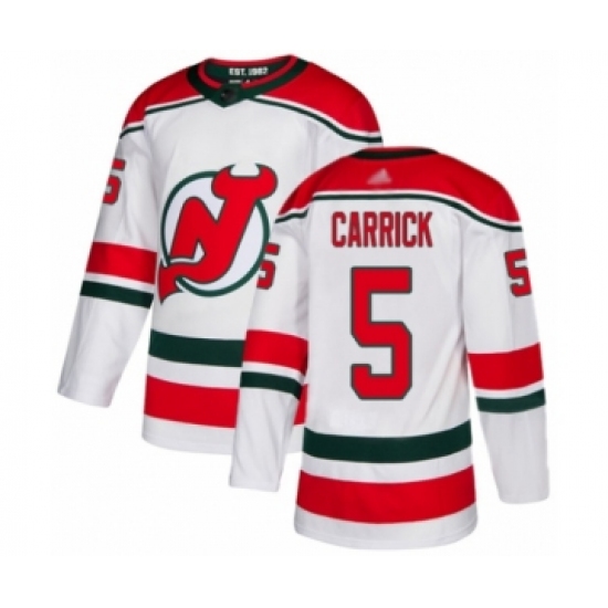 >Men's New Jersey Devils #5 Connor Carrick Authentic White Alternate Hockey Jersey