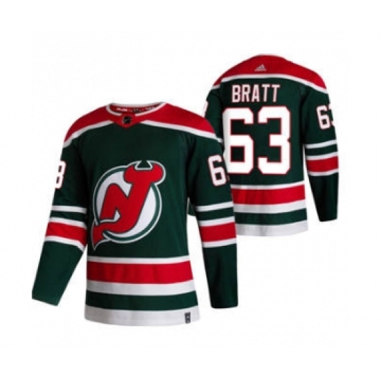 Men's New Jersey Devils #63 Jesper Bratt Green 2020-21 Reverse Retro Alternate Hockey Jersey