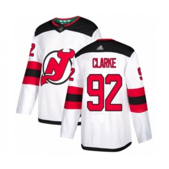 >Men's New Jersey Devils #92 Graeme Clarke Authentic White Away Hockey Jersey