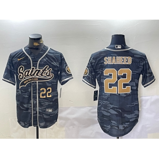 >Men's New Orleans Saints #22 Rashid Shaheed Grey Camo With Cool Base Stitched Baseball Jerseys