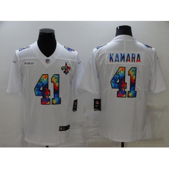 >Men's New Orleans Saints #41 Alvin Kamara White Rainbow Version Nike Limited Jersey