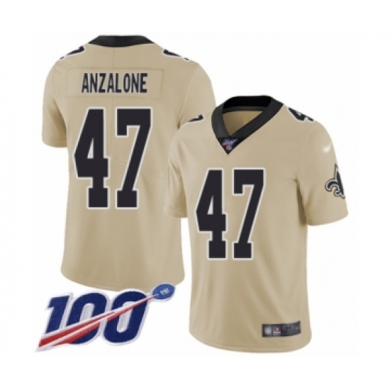 Men's New Orleans Saints #47 Alex Anzalone Limited Gold Inverted Legend 100th Season Football Jersey