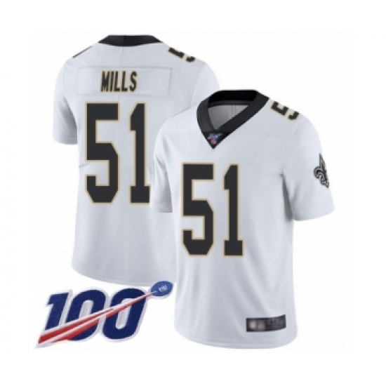 Men's New Orleans Saints #51 Sam Mills White Vapor Untouchable Limited Player 100th Season Football Jersey