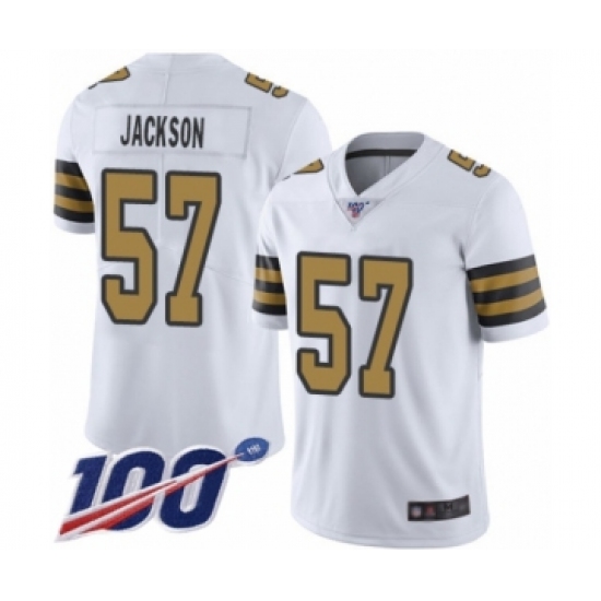 >Men's New Orleans Saints #57 Rickey Jackson Limited White Rush Vapor Untouchable 100th Season Football Jersey