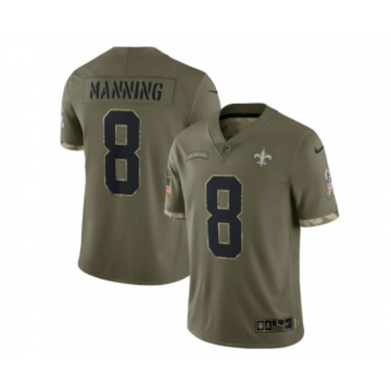 >Men's New Orleans Saints #8 Archie Manning 2022 Olive Salute To Service Limited Stitched Jersey