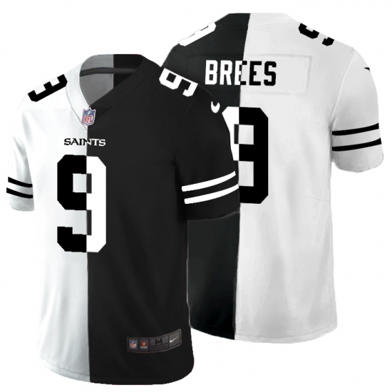 Men's New Orleans Saints #9 Drew Brees Black White Limited Split Fashion Football Jersey