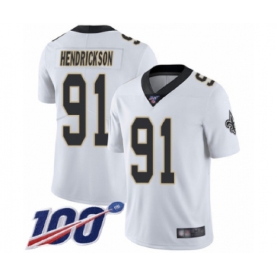 Men's New Orleans Saints #91 Trey Hendrickson White Vapor Untouchable Limited Player 100th Season Football Jersey